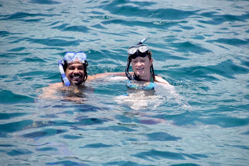 All in all, it was a super fun day. We enjoyed the sun, sparkling water in all shades of blue and turquoise, each other’s company and the activities on the catamaran cruise.