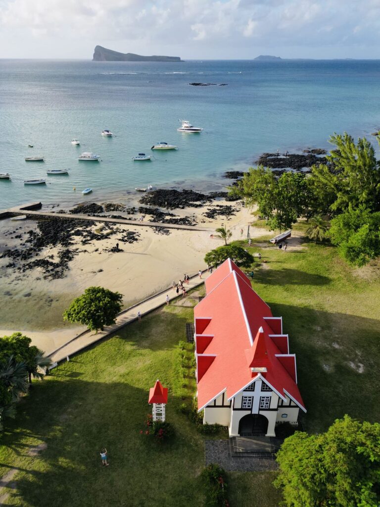This little church at the northern tip of the island, stands as a symbol of Mauritius’ cultural and historical heritage. Its distinctive red roof contrasts beautifully against the blue sky and turquoise sea.