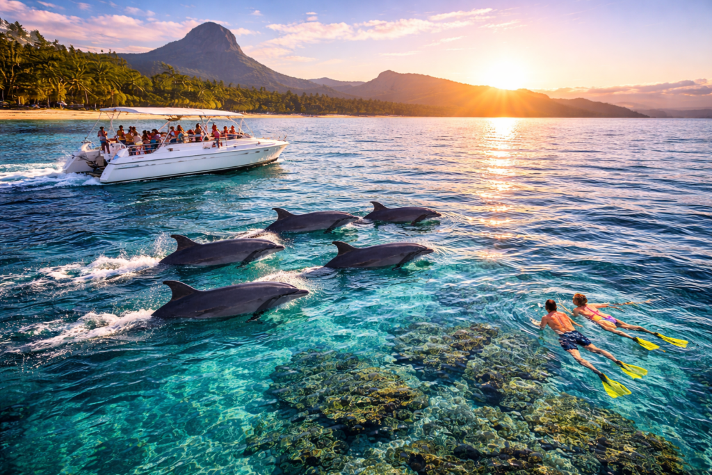 Watching dolphins glide through the clear blue water while surrounded by the stunning Mauritian coastline is truly magical. Many tours also include snorkeling stops where visitors can explore the colorful marine life of the lagoon.