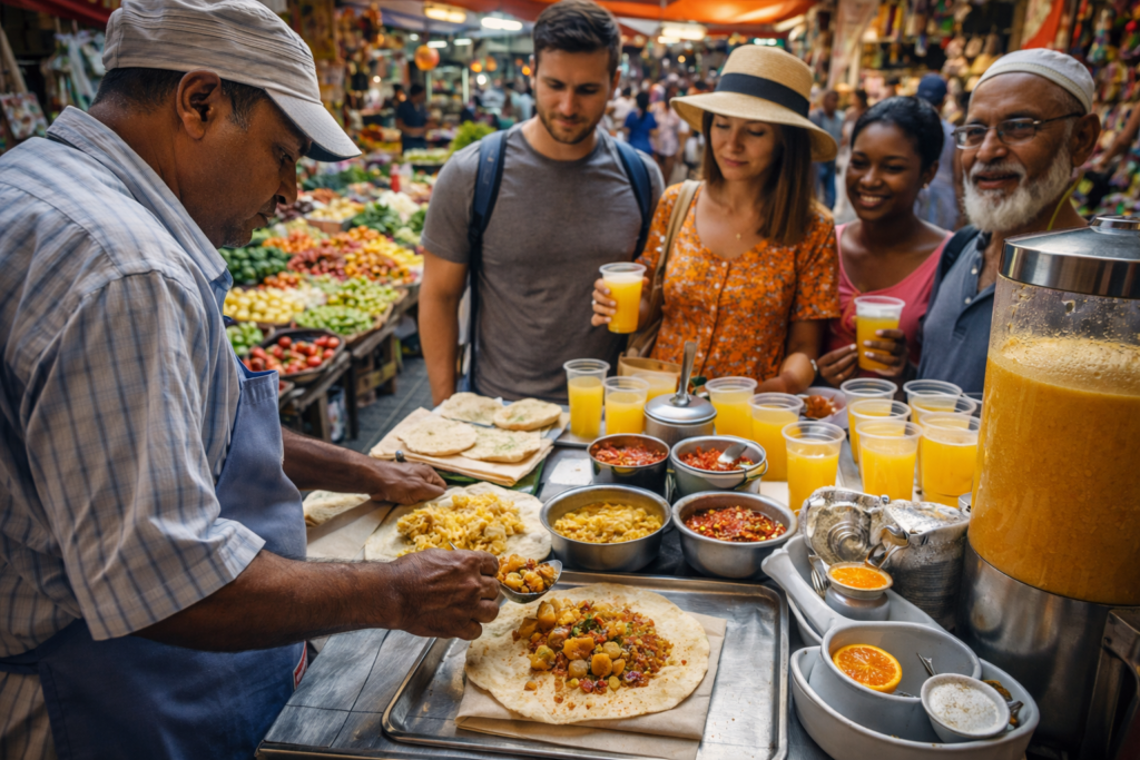 Food lovers will especially enjoy the street food available here. From local snacks like dholl puri to freshly prepared juices, the market is full of delicious flavors waiting to be explored.