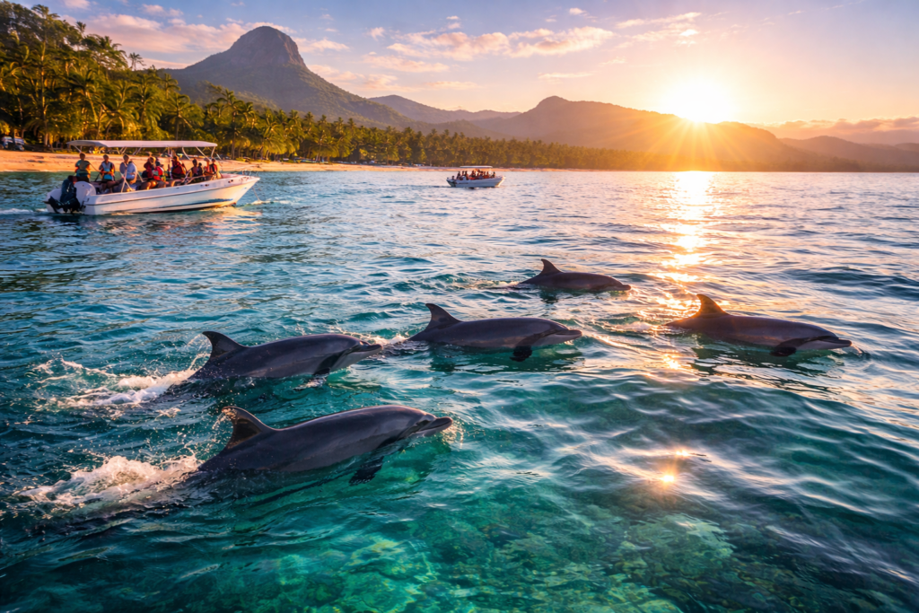 Another unforgettable experience is swimming with dolphins in Tamarin Bay, located on the west coast of Mauritius. Early morning boat trips allow visitors to see dolphins in their natural environment, making this one of the most exciting activities on the island.